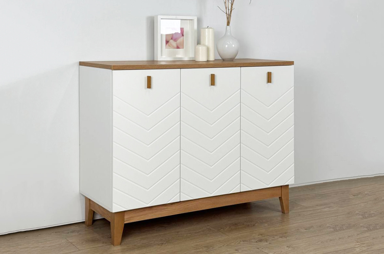 Классический трехдверный комод в скандинавском стиле. Модель отличается лаконичным дизайном, продуманной конструкцией и использованием качественных материалов. Идеально подходит для организации хранения в спальне, гостиной или прихожей.