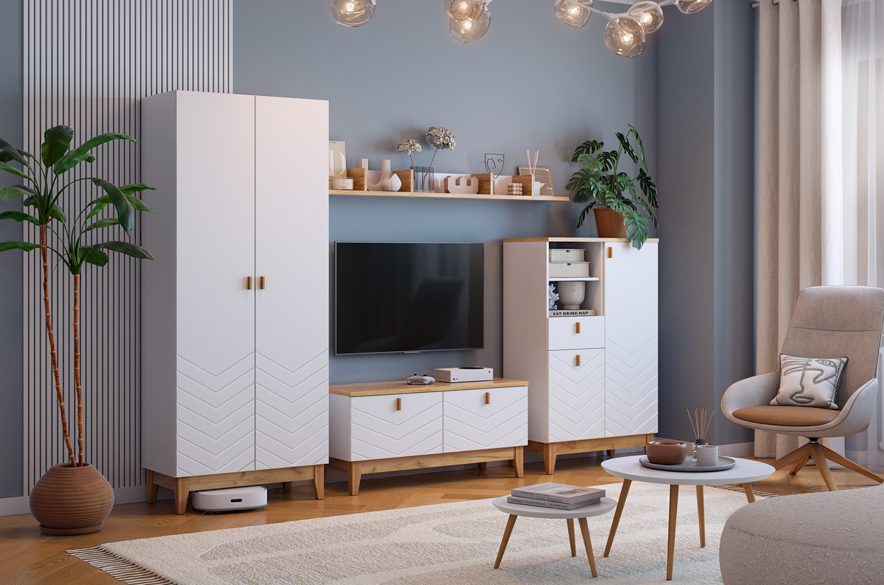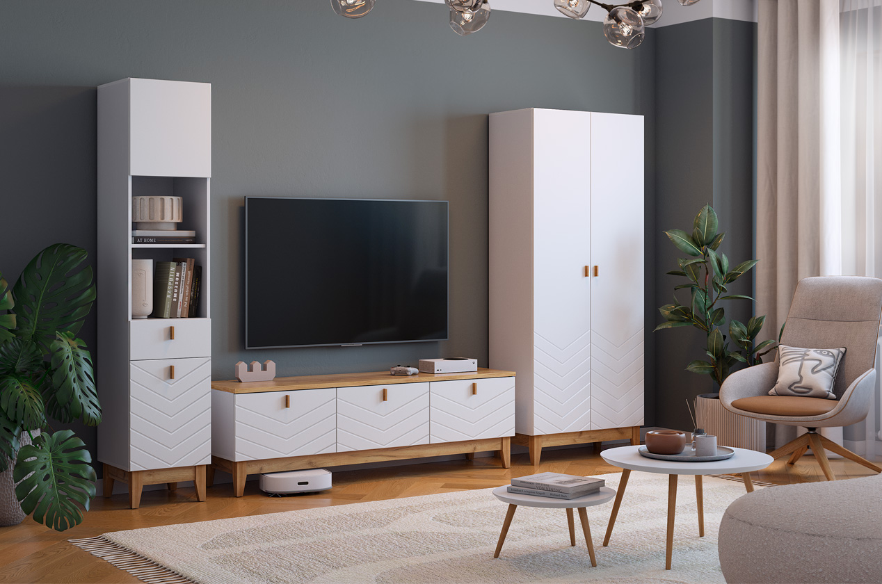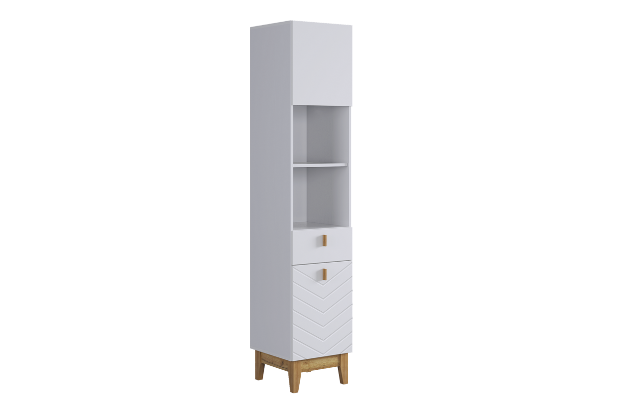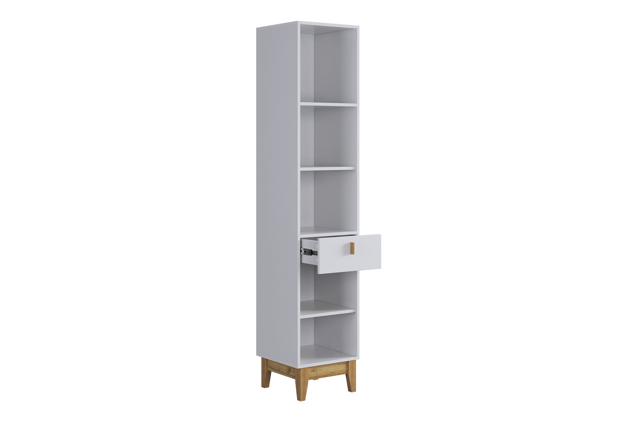 Узкий многофункциональный стеллаж для организации хранения в любом помещении. Модель сочетает закрытые и открытые секции, что позволяет гибко зонировать пространство и поддерживать порядок. Выполнен в лаконичном скандинавском стиле.