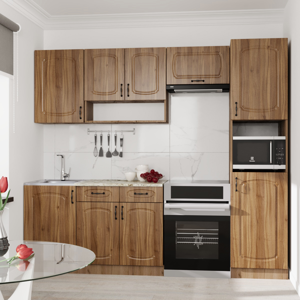 Кухонный гарнитур №4  Дуб крафт табачн./Орех антик (столеш Версаль+Сушка+планка) 1,8м