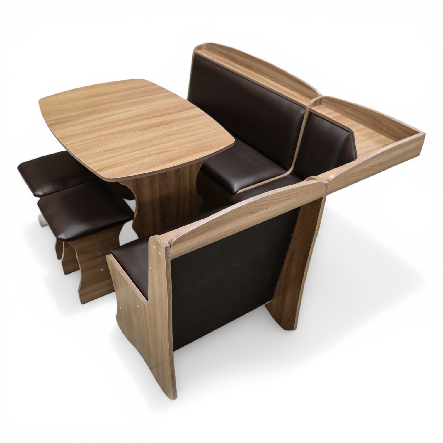 —Обеденная группа, Ясень шимо темный (скамья, стол, табурет), Кож.зам. Sicilia BROWN