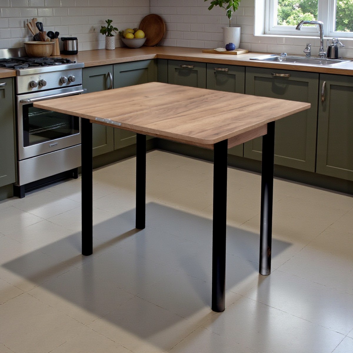 —Стол кухонный Уют 4 45(+45)*80*75 Дуб крафт табачн/черный