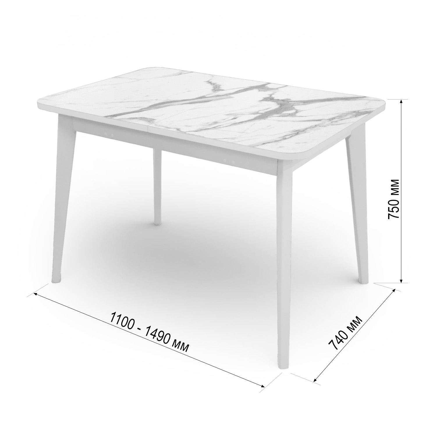 Стол Бриз-2 1100(390)*740 Пластик, 005 Венато (Мрамор белый), подстолье дерево,эмаль белая