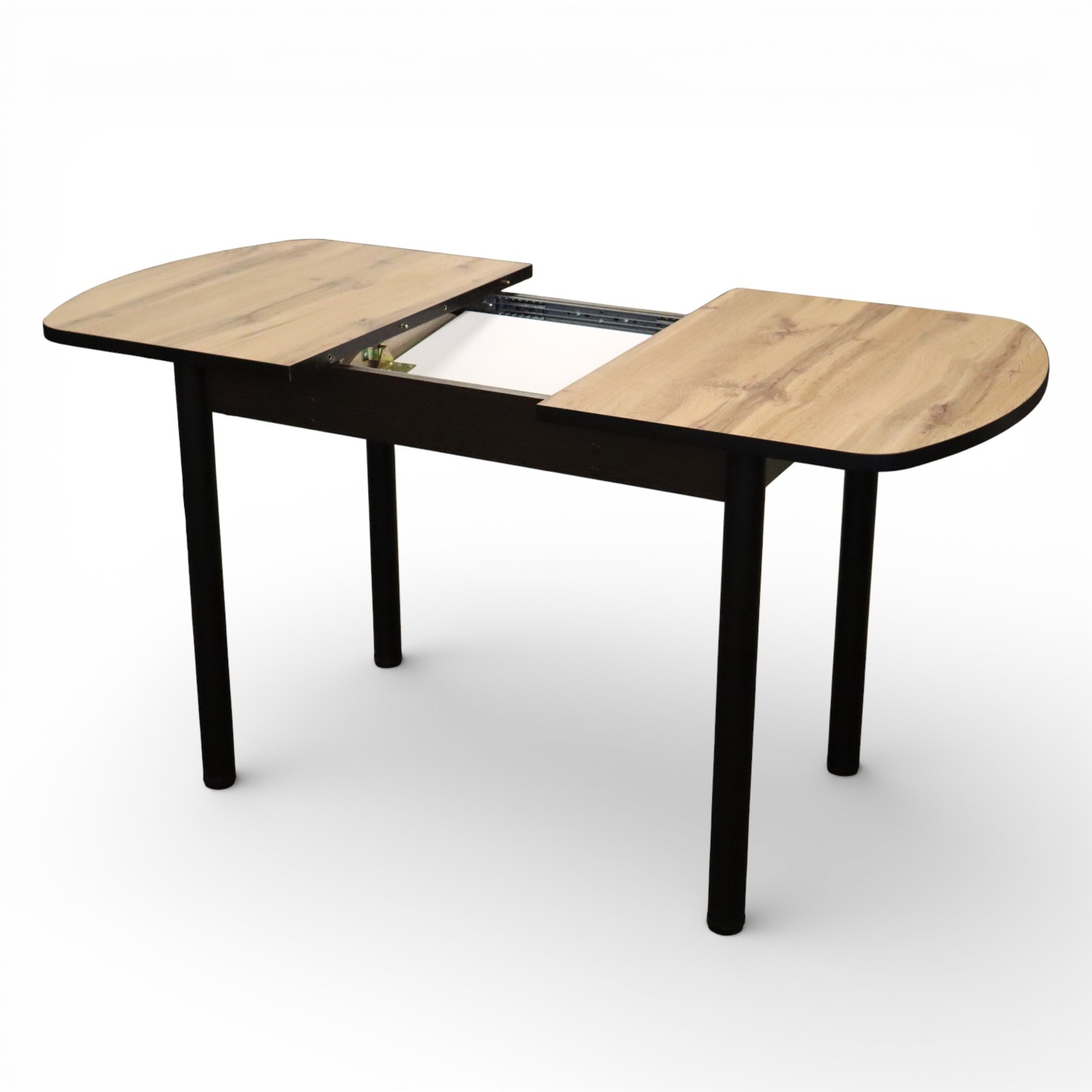 Стол Фаворит 1100(+400)*700 Пластик Дуб Вотан,бабочка(B5)/ЛДСП Бодега темная+опоры(черн)
