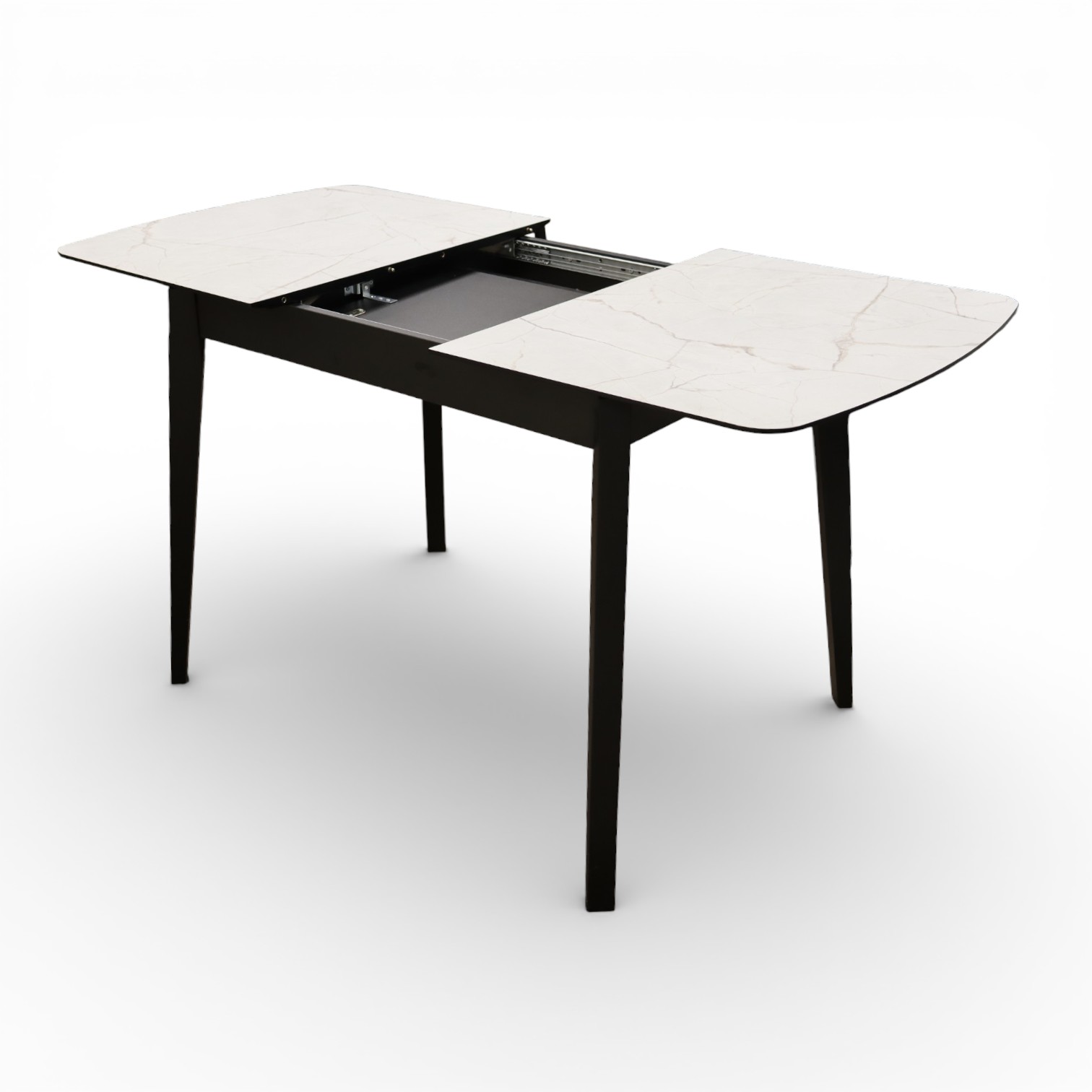 —Стол Ньюман МДФ/пластик, 1100 (1450)*700 Мрамор Монтекатини, опора ZD08 дер/черный
