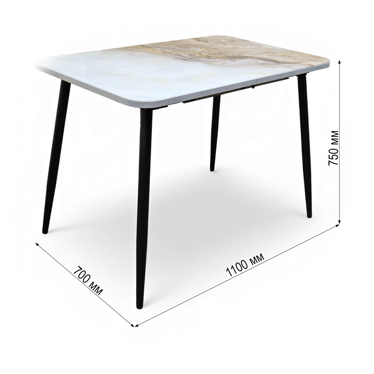 Стол Турин 1100(+400)*700,бабочка, ф/печ Мрамор КР051, B1+металл черный