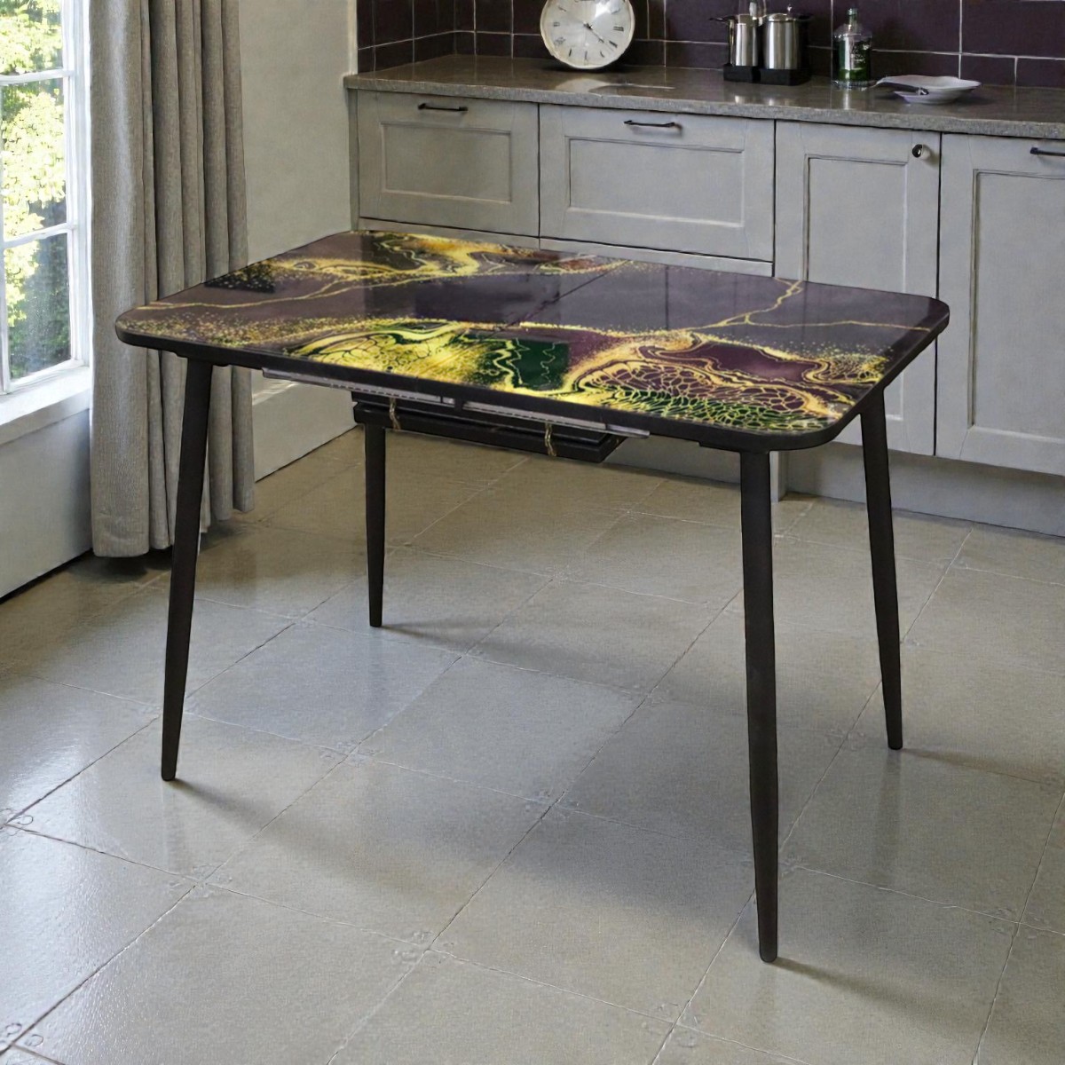 Стол обеденный Турин 110(+40)*70 Абстракция / черный