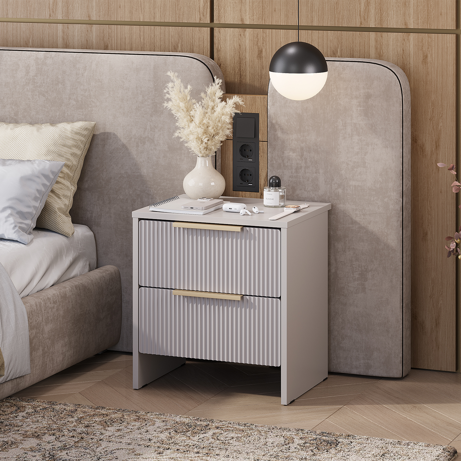 Прикроватная тумба «Пандора» (кашемир/айриш) с фрезеровкой и шариковыми направляющими