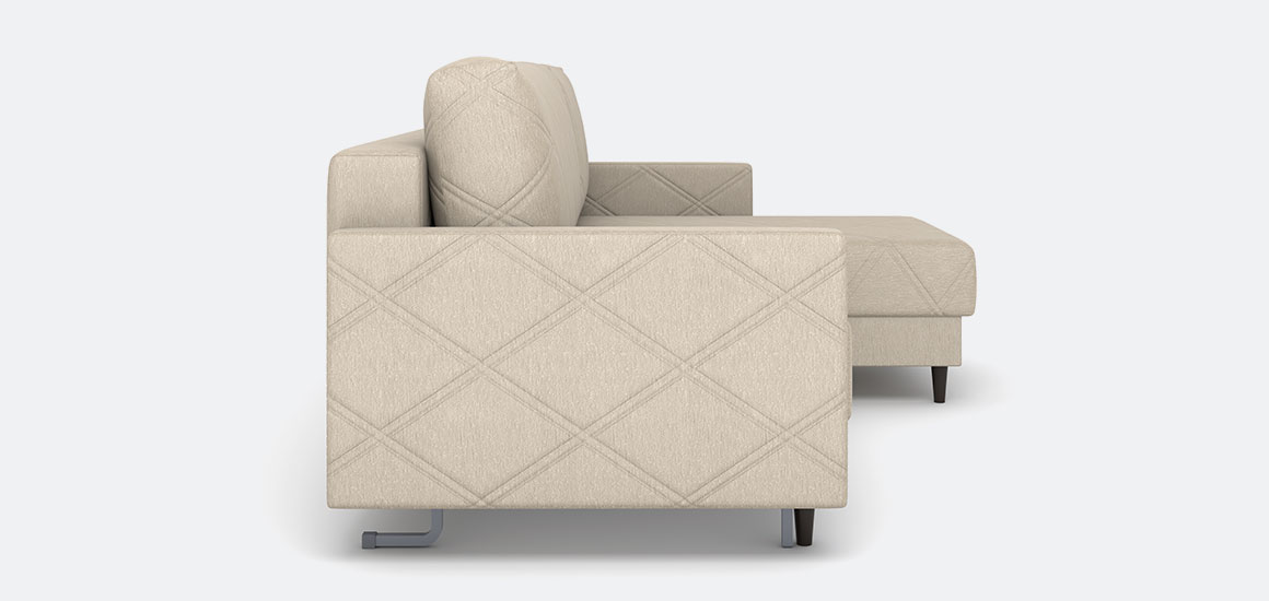 Угловой диван «Лондон» — это воплощение скандинавского подхода к дизайну: лаконичные формы, продуманная эргономика и максимальный комфорт. Модель украшена оригинальной ромбовидной стежкой чехлов, которая не только придает дивану выразительность, но и предотвращает растяжение ткани, сохраняя безупречный вид долгие годы.
