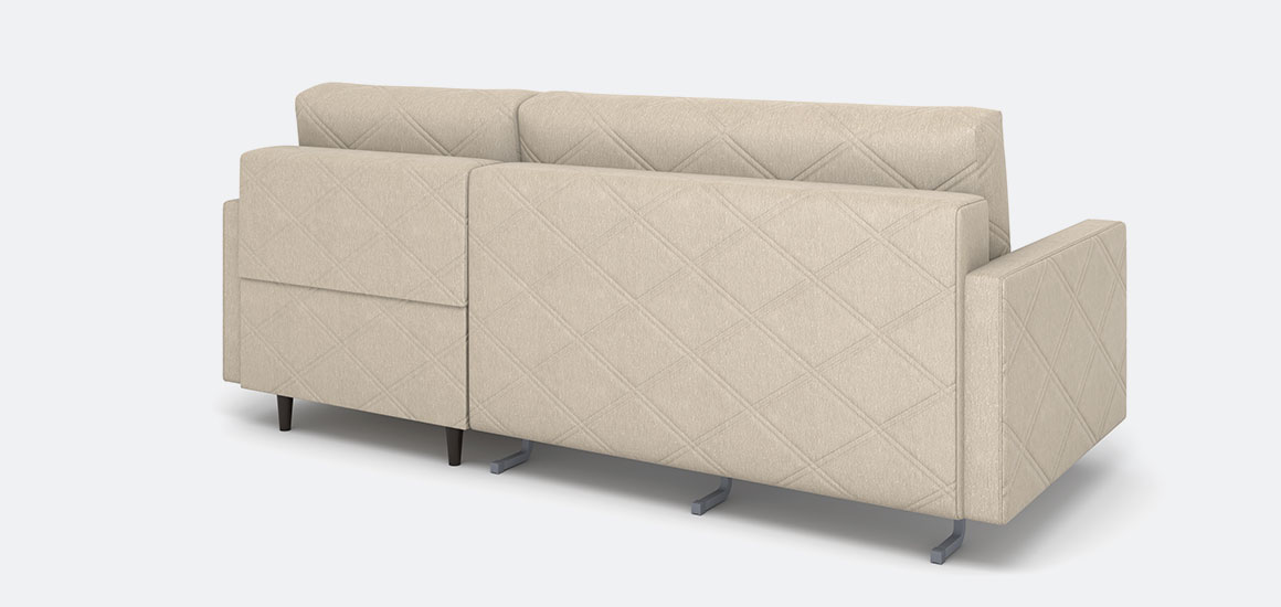 • Высокие опоры из пластика (клиренс 12 см): Диван легко парит над полом, упрощая уборку и обеспечивая доступ для робота-пылесоса.