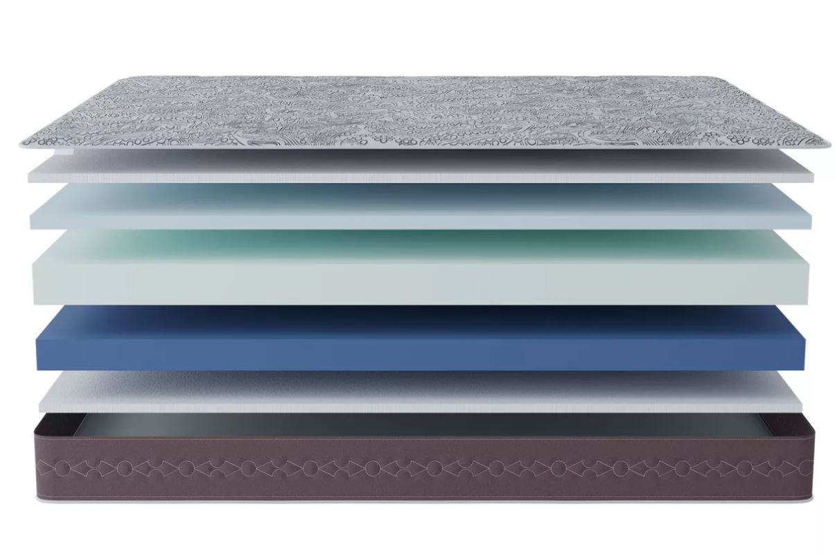 Уникальная «сэндвич»-конструкция из трёх слоёв премиальной пены дарит непревзойдённый комфорт и ортопедическую поддержку.