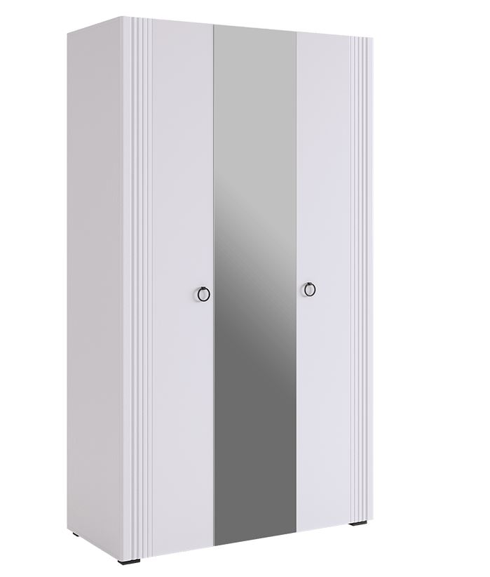 Трехдверный шкаф-гардероб Ева 105.02 с зеркалом — белое дерево/белый матовый