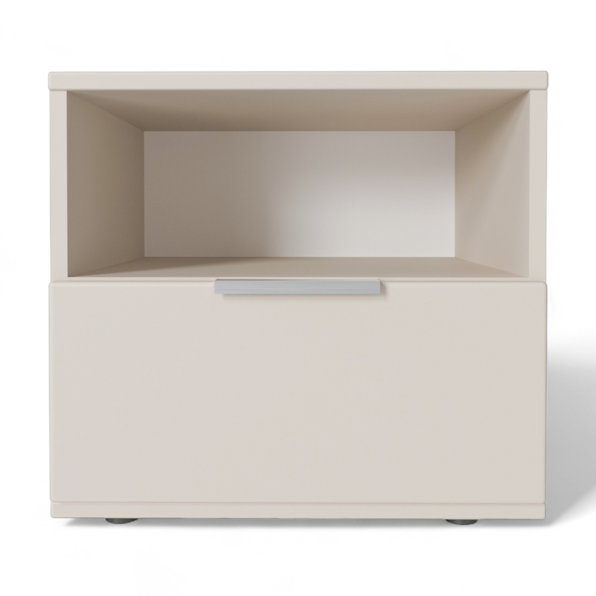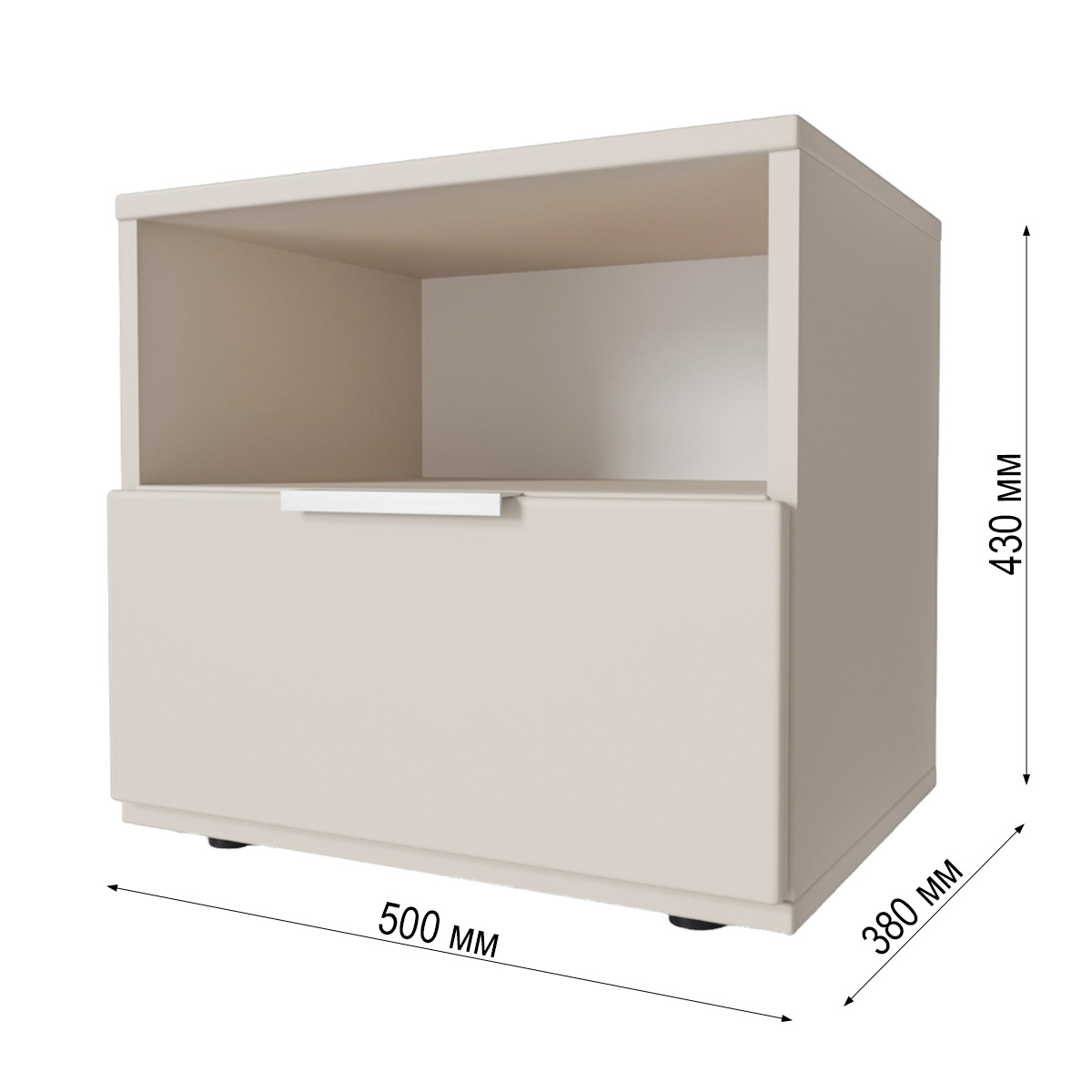 Утонченная тумба с выдвижным ящиком создаст гармоничный акцент в вашей спальне. Модель выполнена в теплой гамме "Кашемир/Дуб Латте" - нежное сочетание фактур создает особую атмосферу уюта.