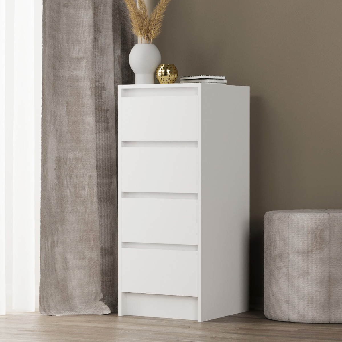 • - 4 вместительных ящика: Забудьте о беспорядке! Четыре глубоких ящика позволят аккуратно разместить одежду, белье, аксессуары или любые другие мелочи.